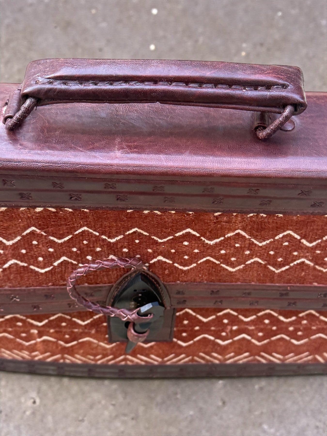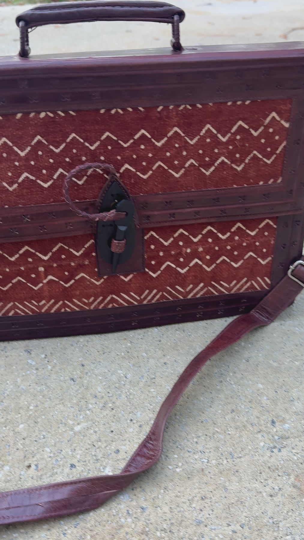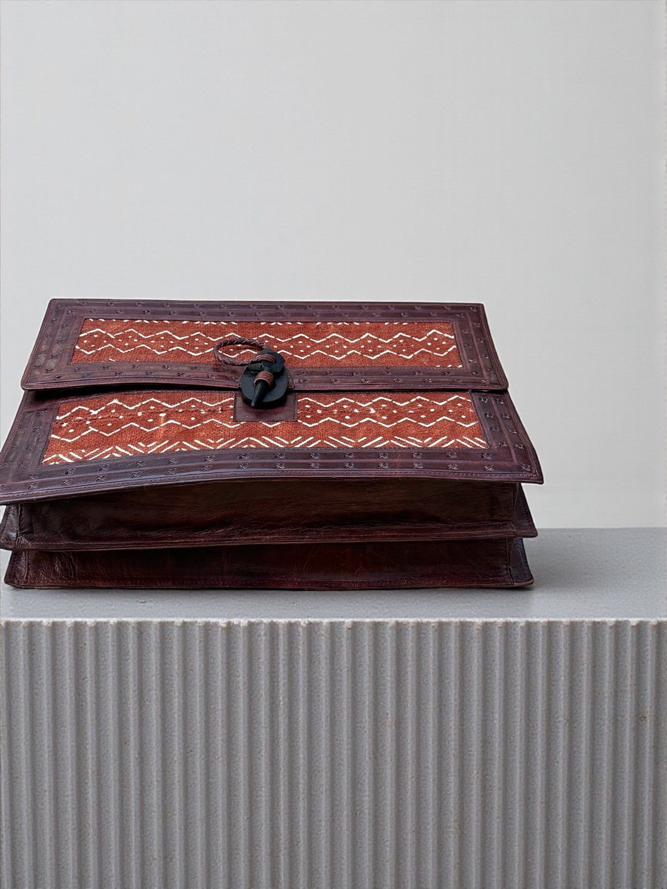 - Handcrafted leather briefcase with traditional mudcloth front panel