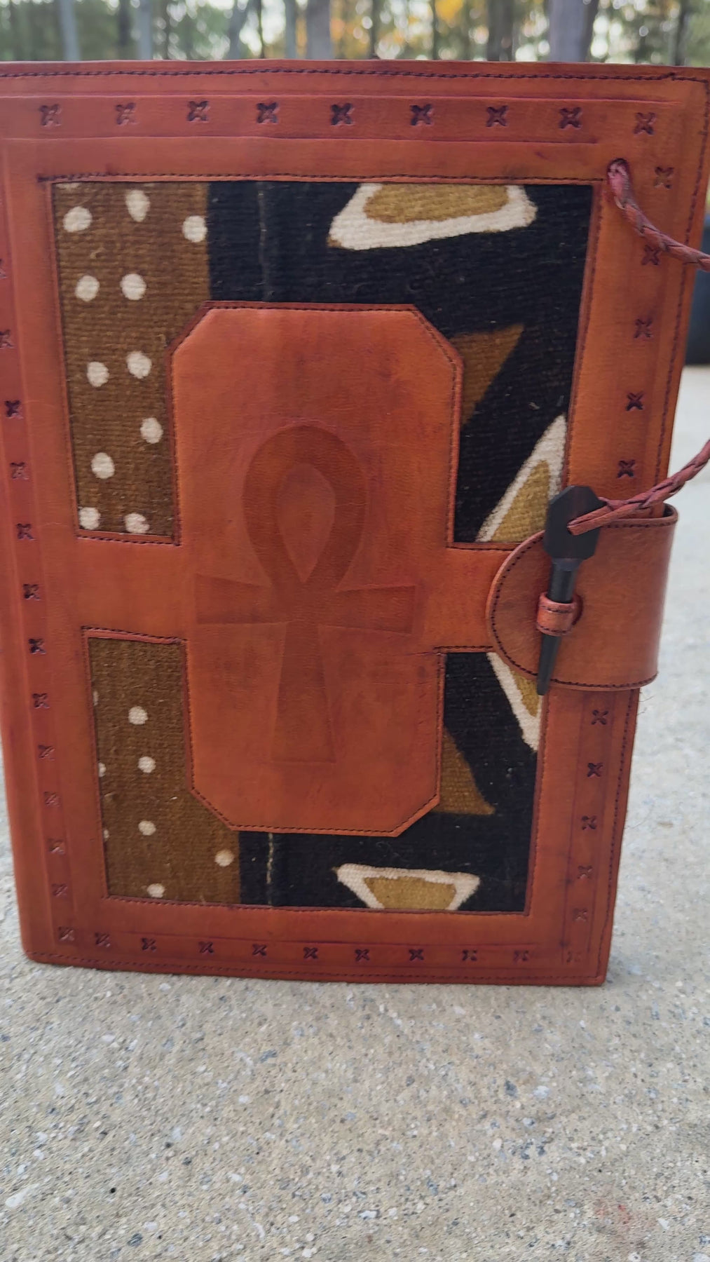 Mudcloth & Leather Ankh Portfolio – Handmade Executive Folder 14×10