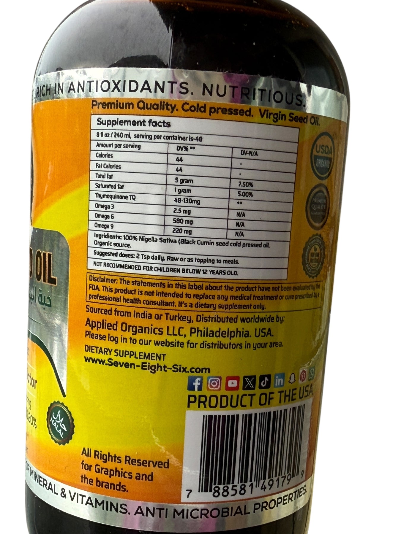- Ingredients: 100% Cold-Pressed Nigella Sativa (Black Cumin) Seed Oil