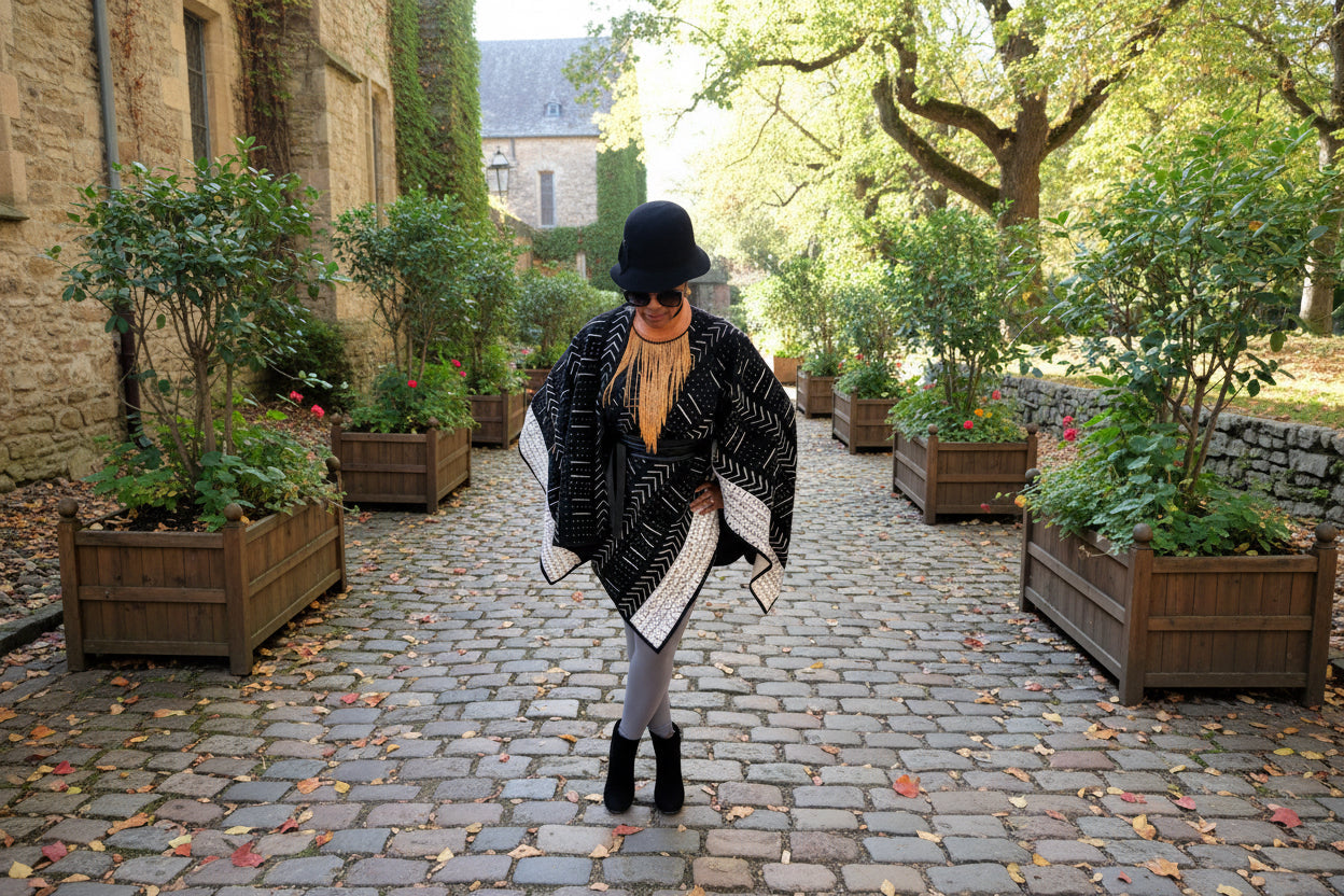 Designed for layering, draping, or wrapping, this shawl can be styled over dresses, pants, jumpsuits, or outerwear. Whether worn open, belted, or draped over the shoulders, it delivers movement, texture, and presence.