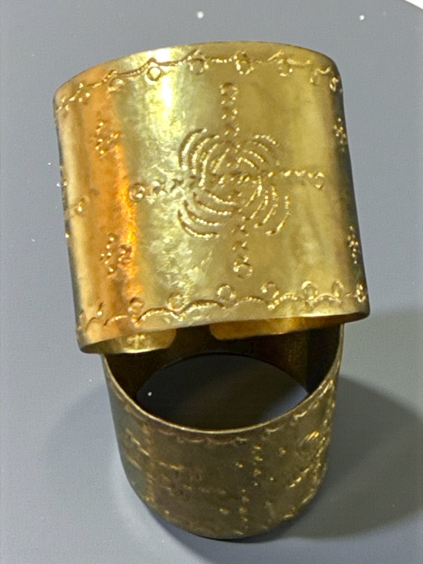 Embossed Brass Adjustable Cuff – Handcrafted Statement Bracelet