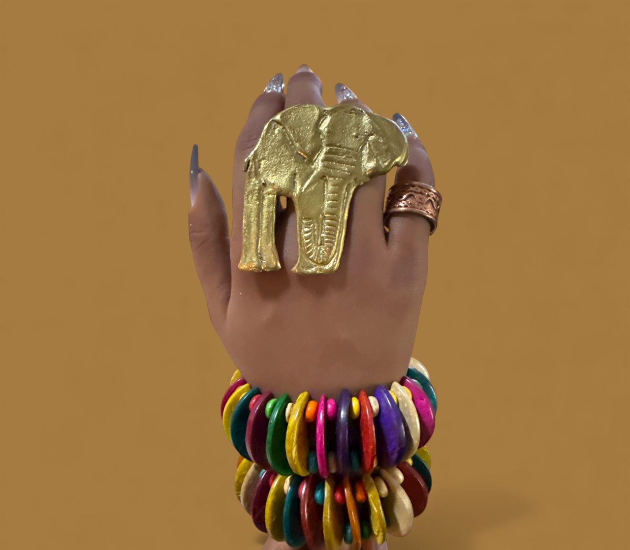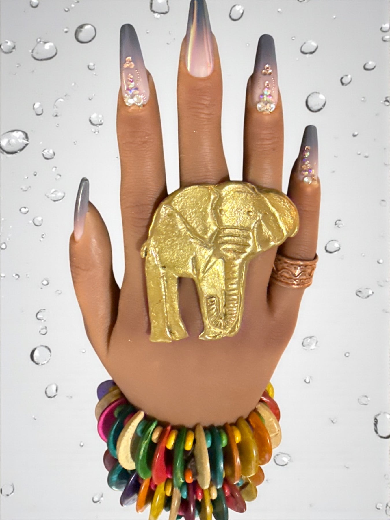 This oversized 2-inch elephant ring is handcrafted from solid brass and designed to make a bold statement wherever you go.