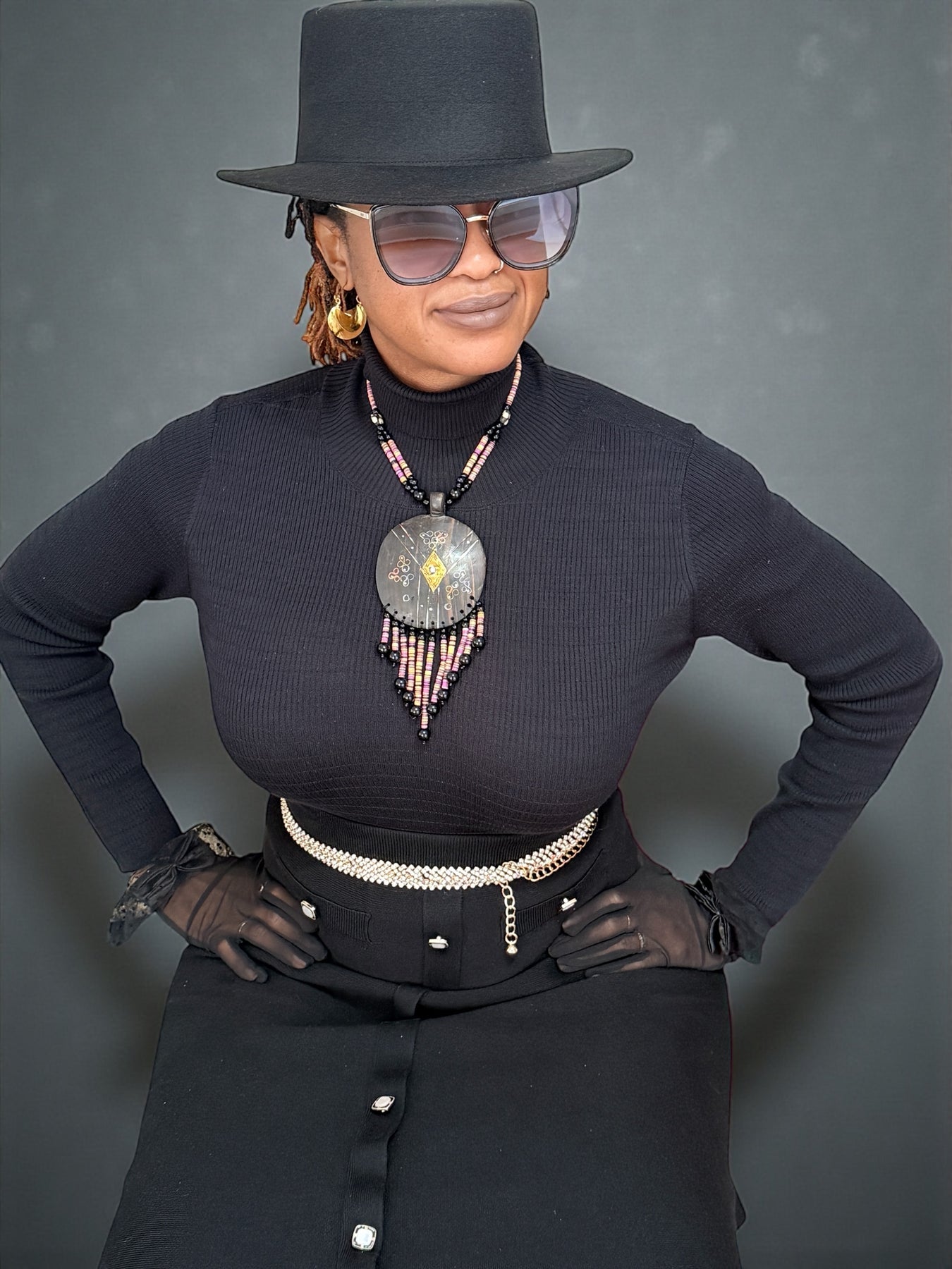 - Pairs effortlessly with solid colors, turtlenecks, kaftans, and minimalist outfits