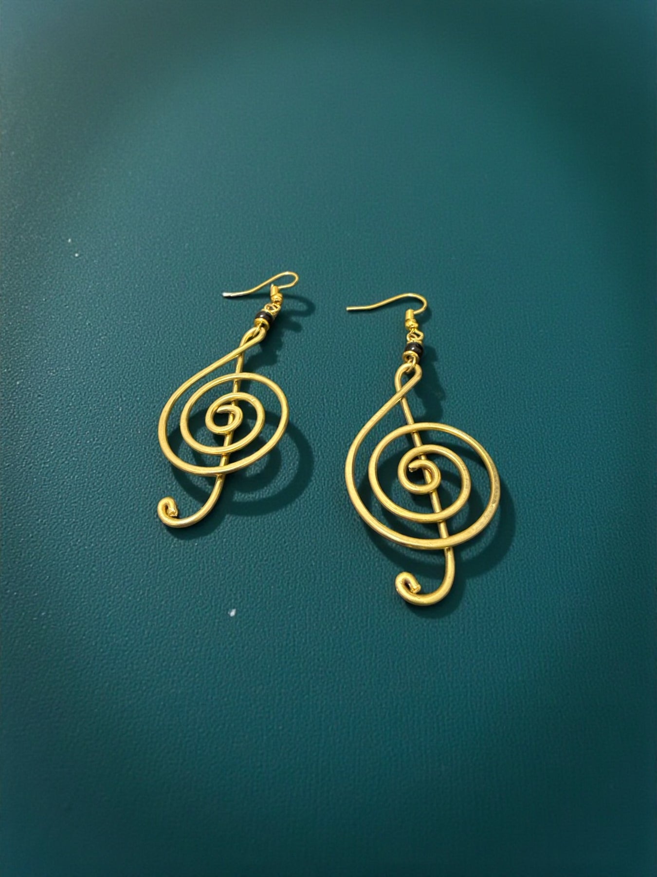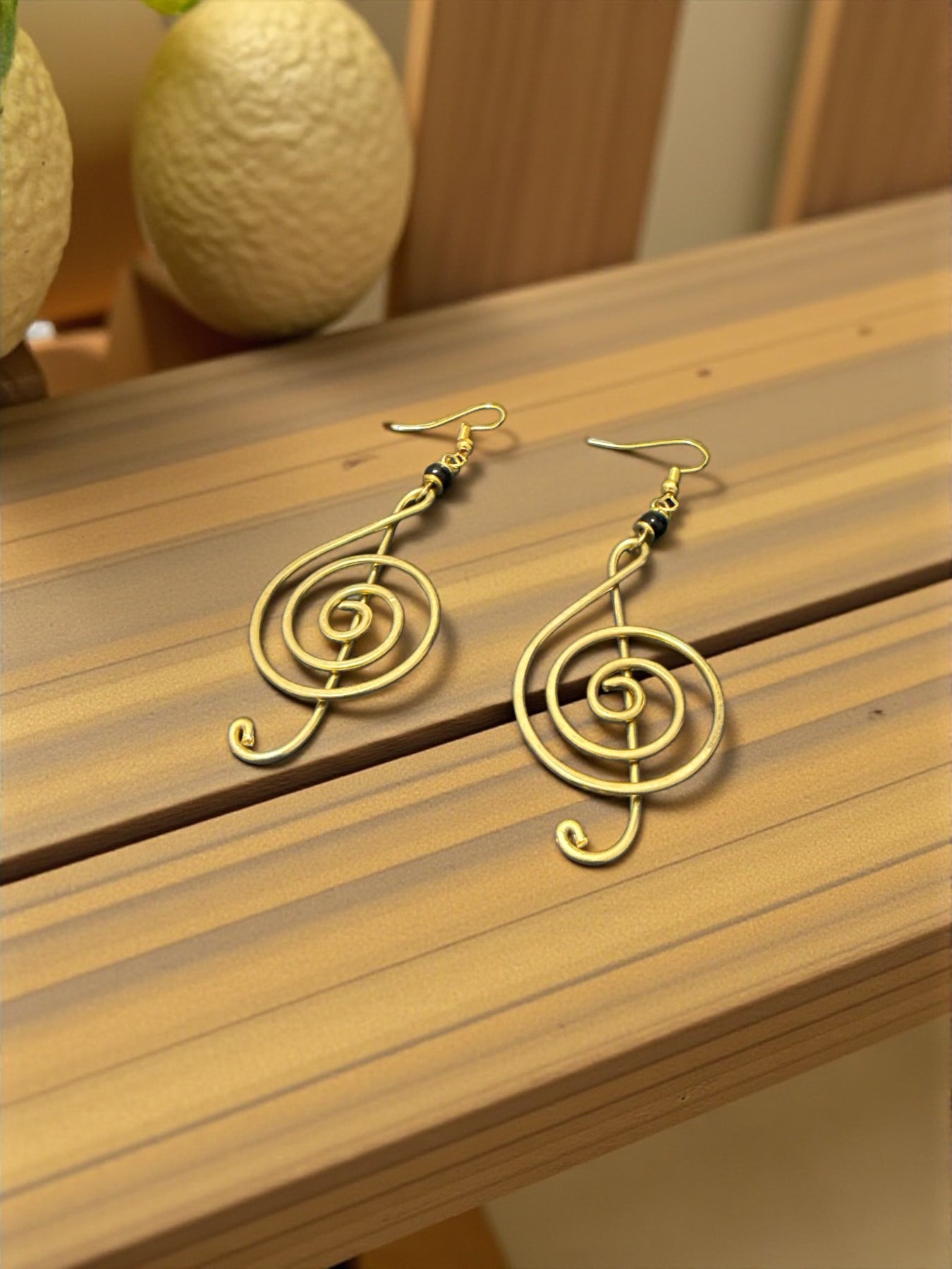 Melody Spiral Statement Earrings — Handcrafted Brass Musical Design