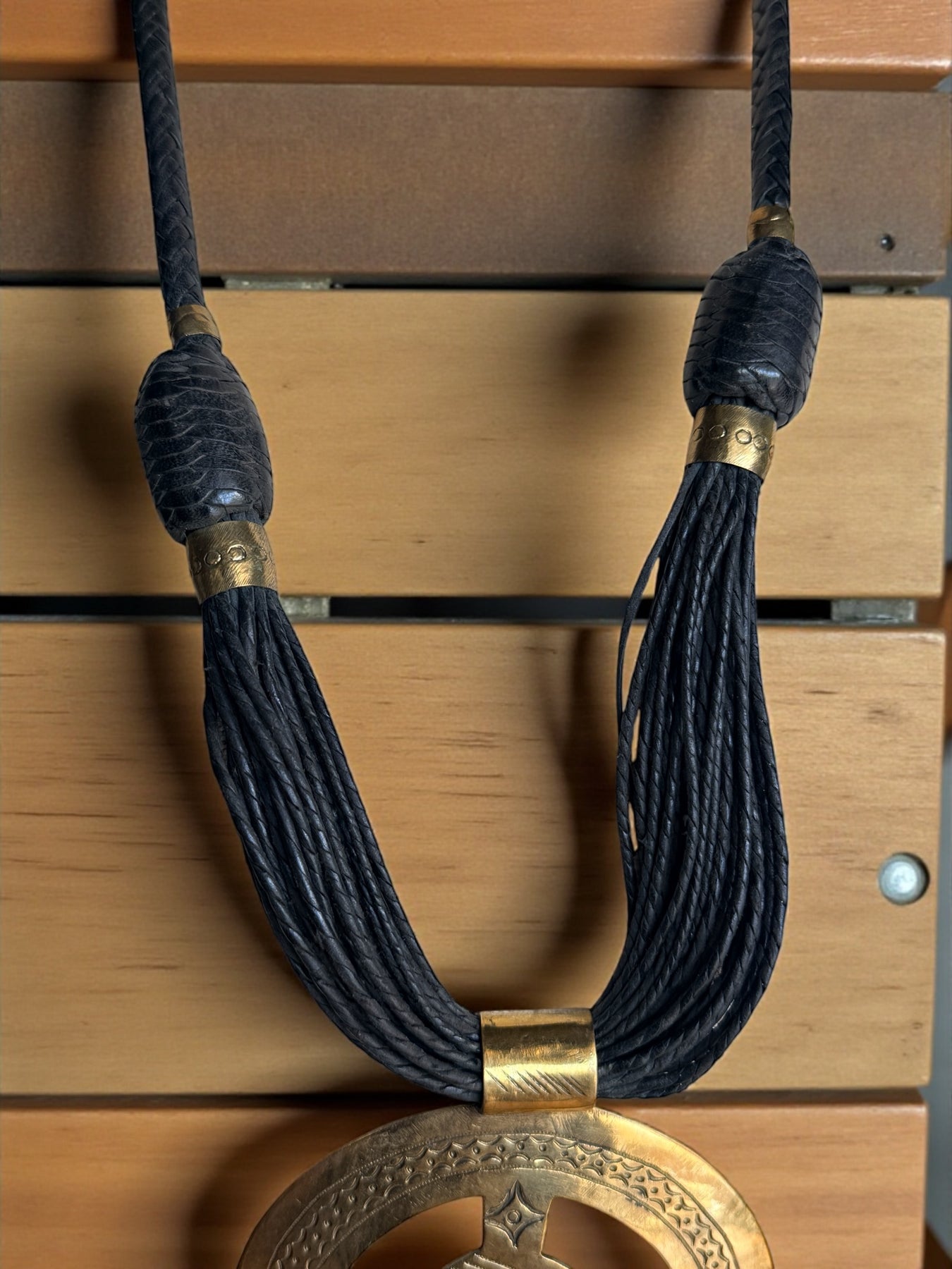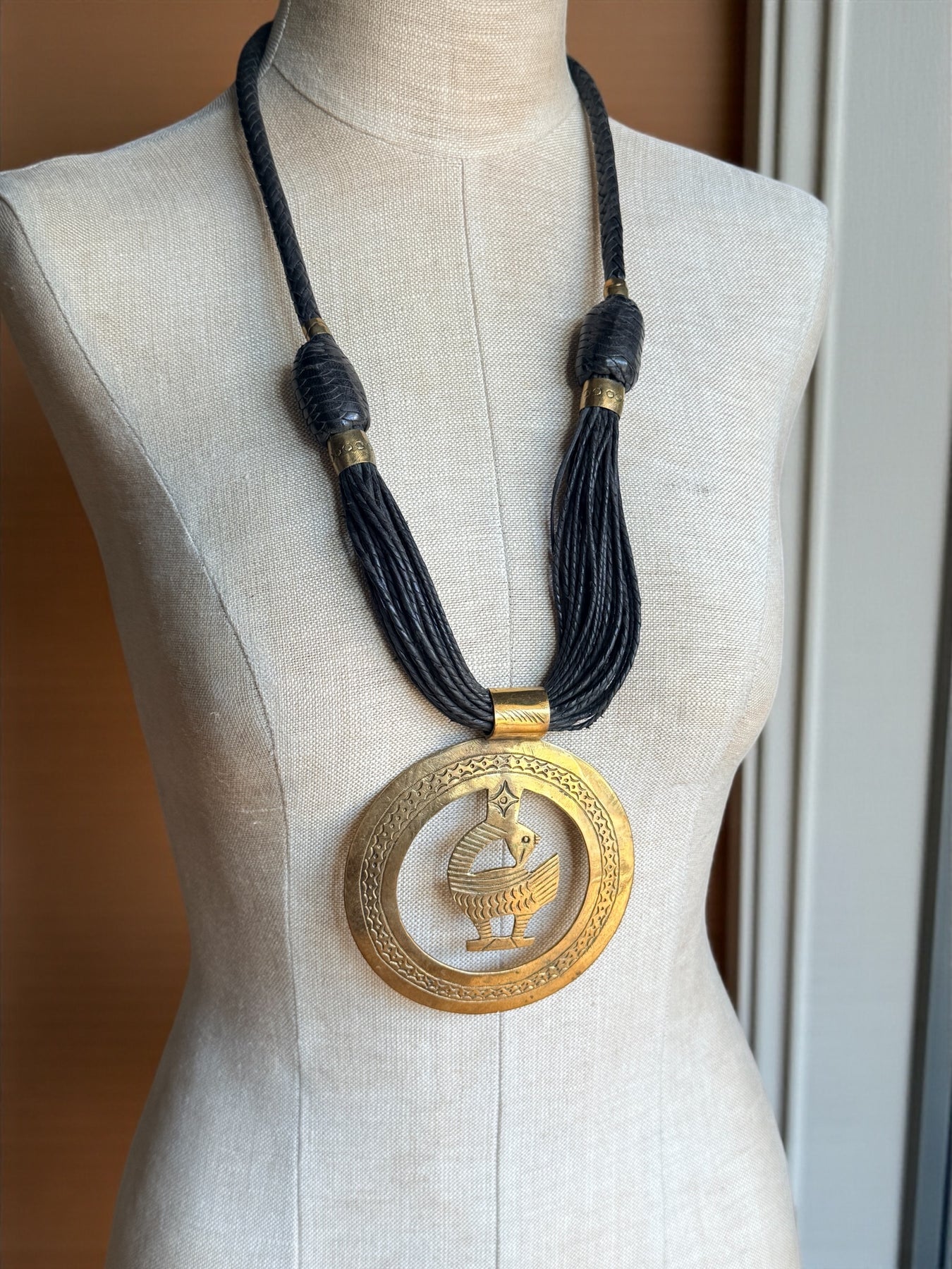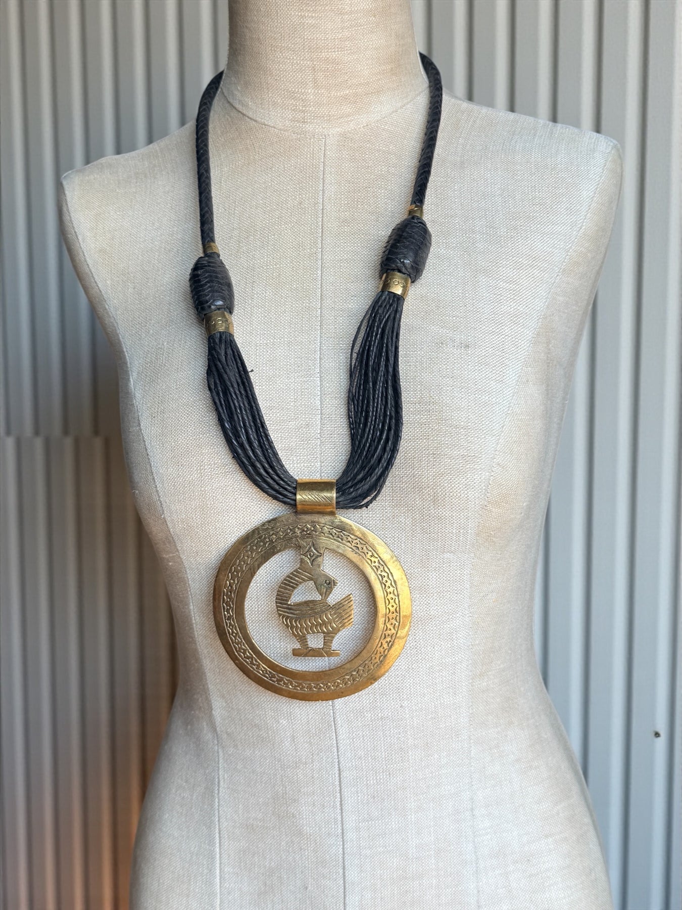 Sankofa Legacy Medallion Necklace – Handcrafted Brass & Braided Leather Statement