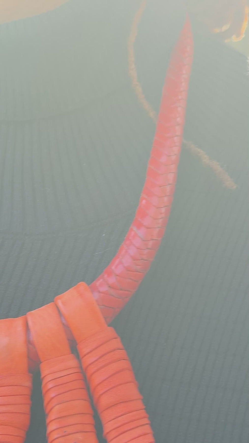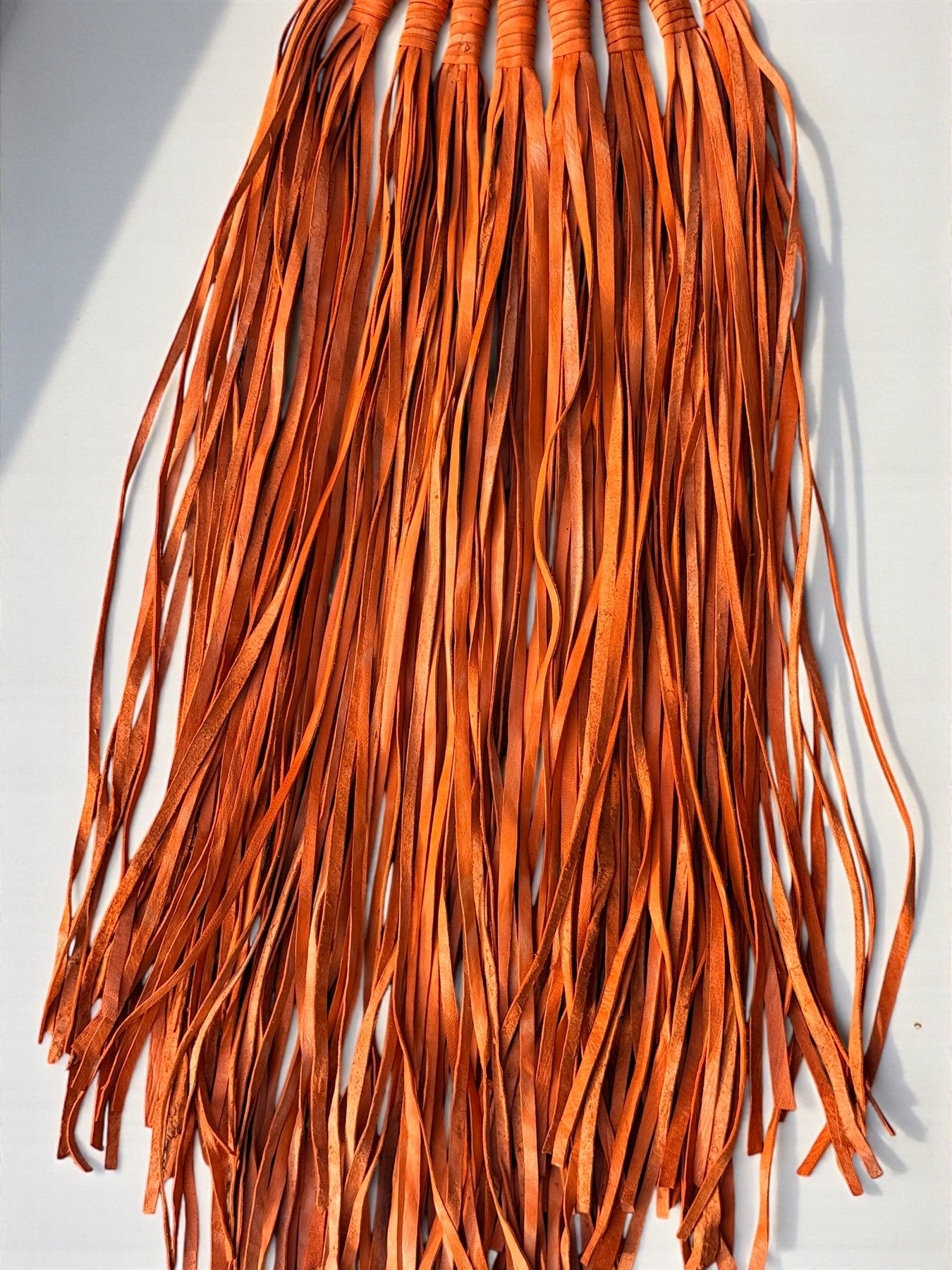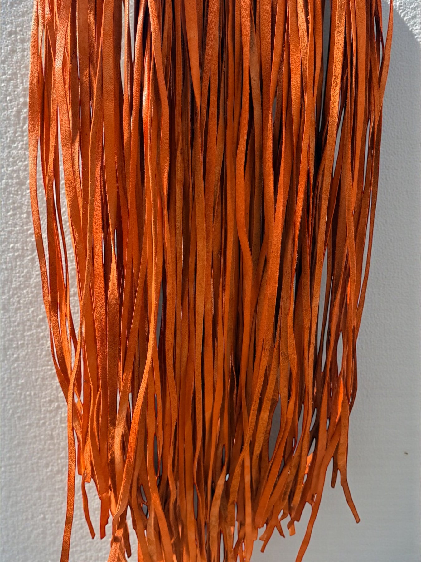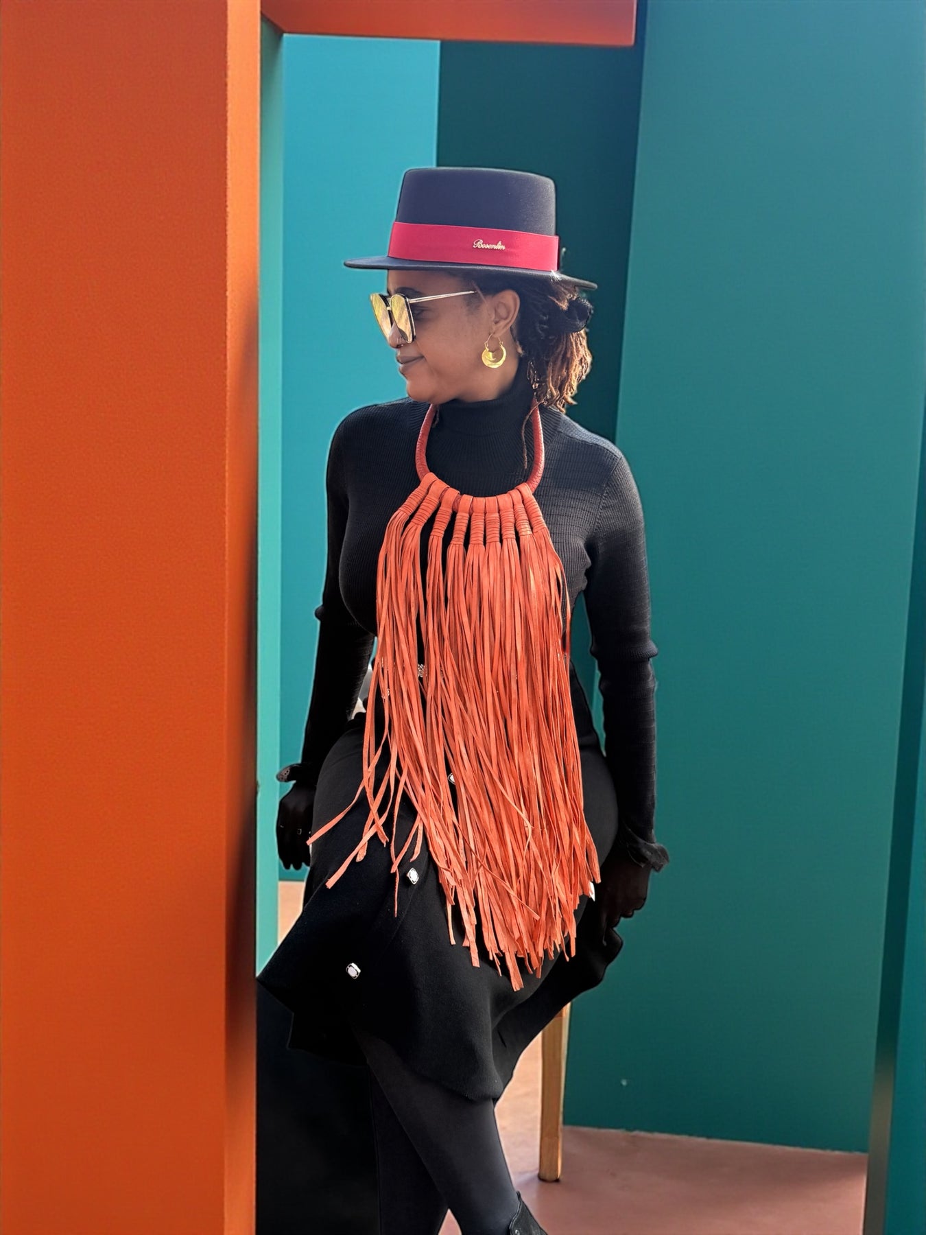 The Sunfire Leather Fringe Statement Necklace is a handcrafted wearable art piece designed to move with you and command attention. Made with long, flowing strips of soft leather in a rich warm orange tone, this necklace adds dramatic texture and cultural depth to any look.