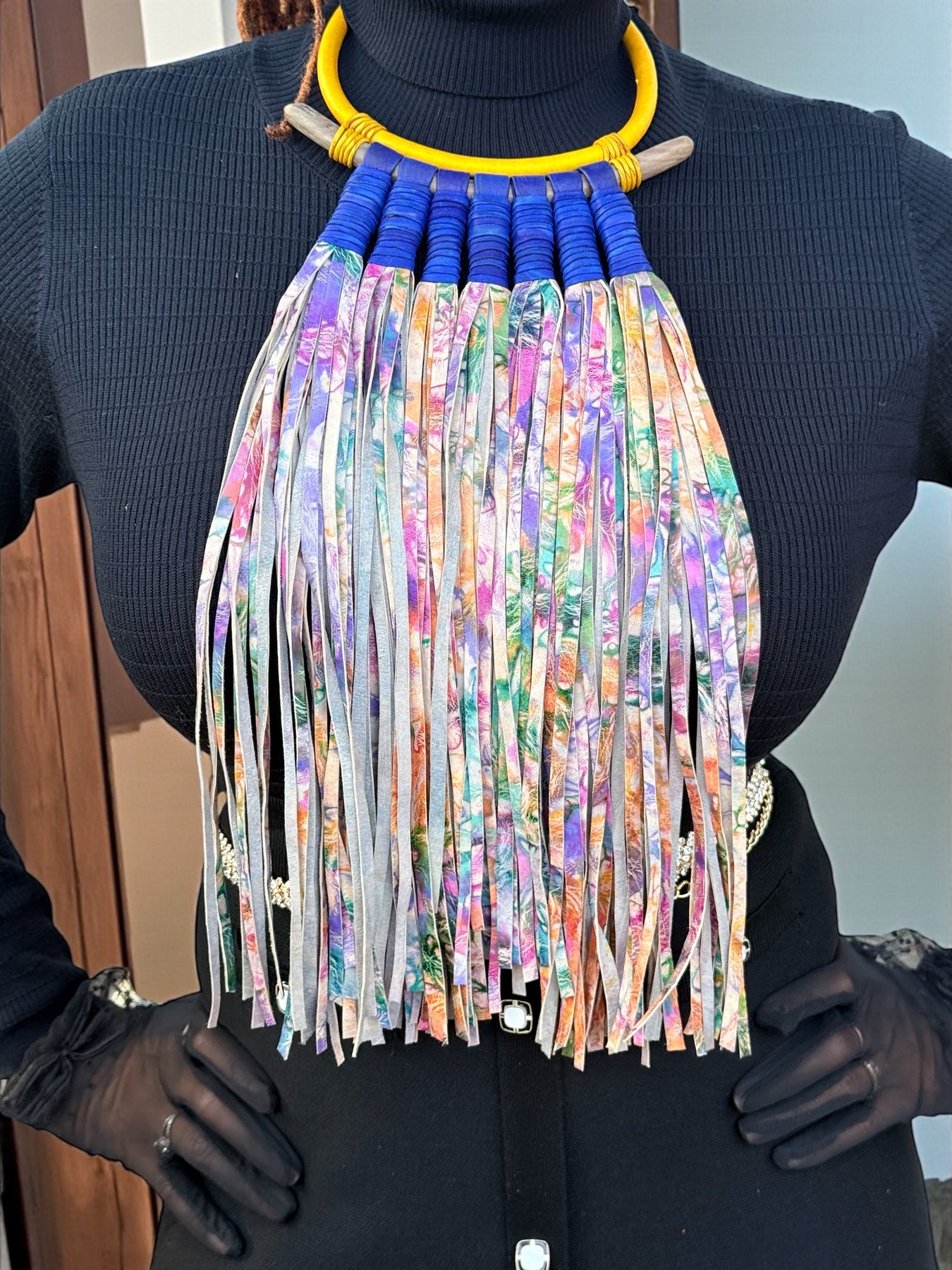 Threads of Expression – Handcrafted Leather Fringe Statement Necklace