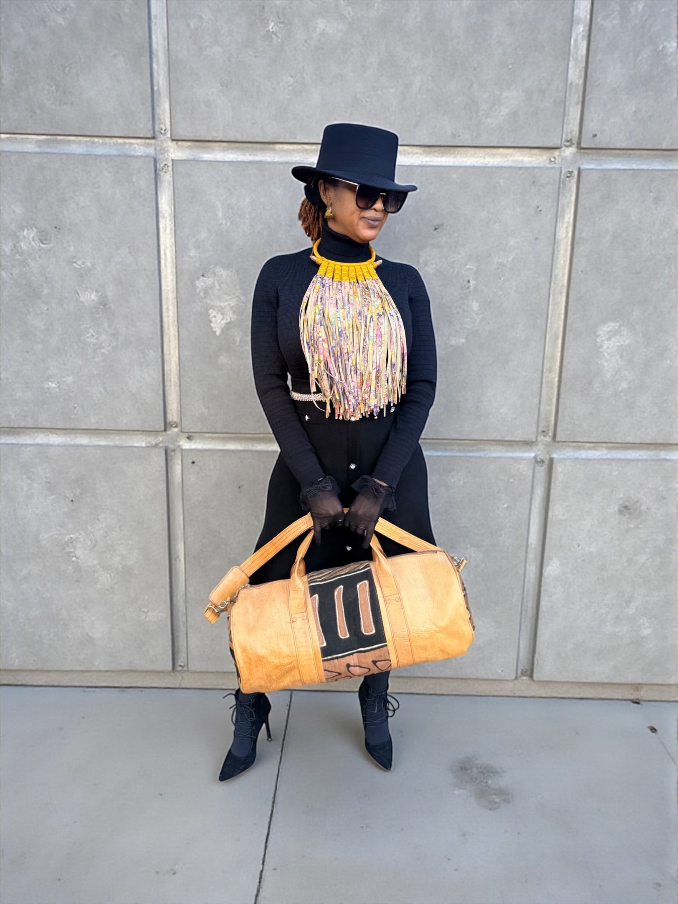 This Handcrafted Leather Fringe Statement Necklace is a celebration of movement, individuality, and form. Each piece is designed to express presence through flowing leather fringe and a structured collar, creating a balance between softness and strength.