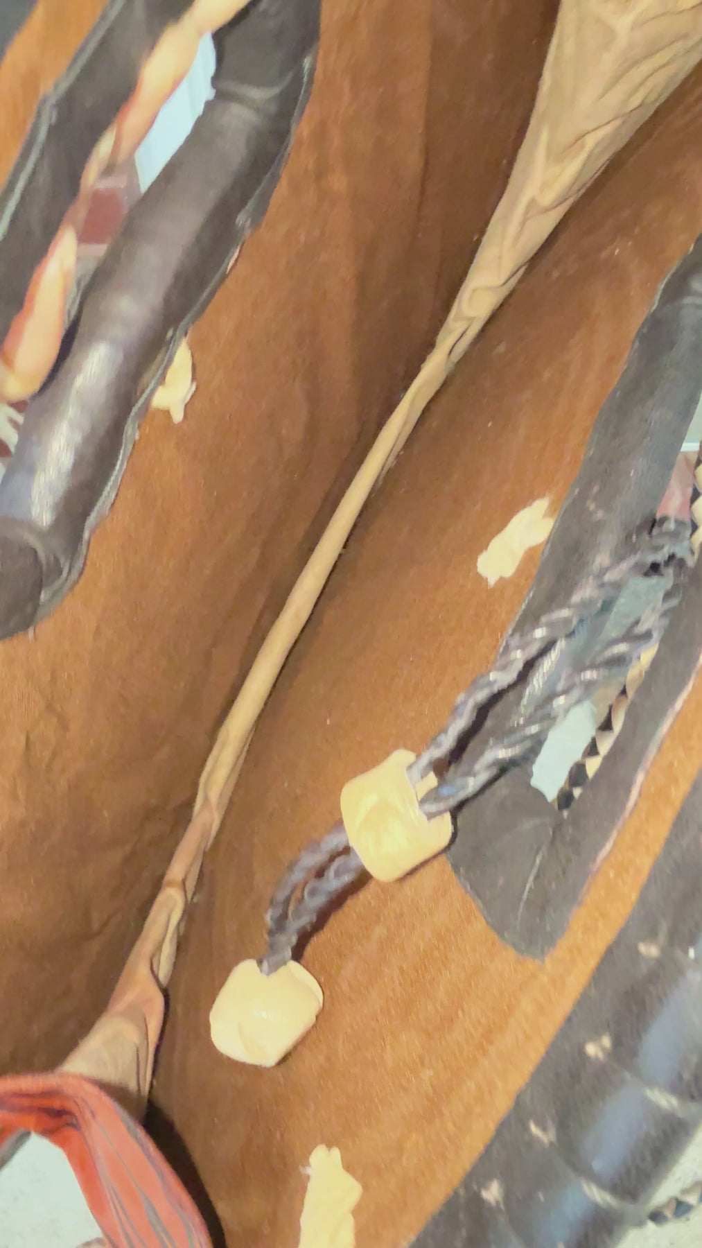 - Adjustable braided strap + sturdy carved handle