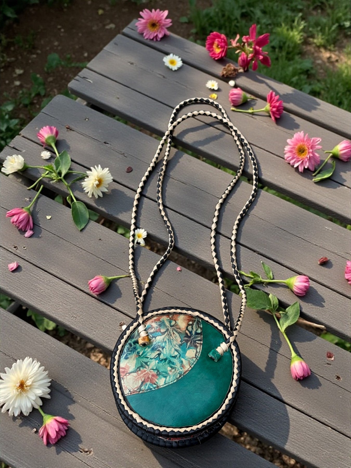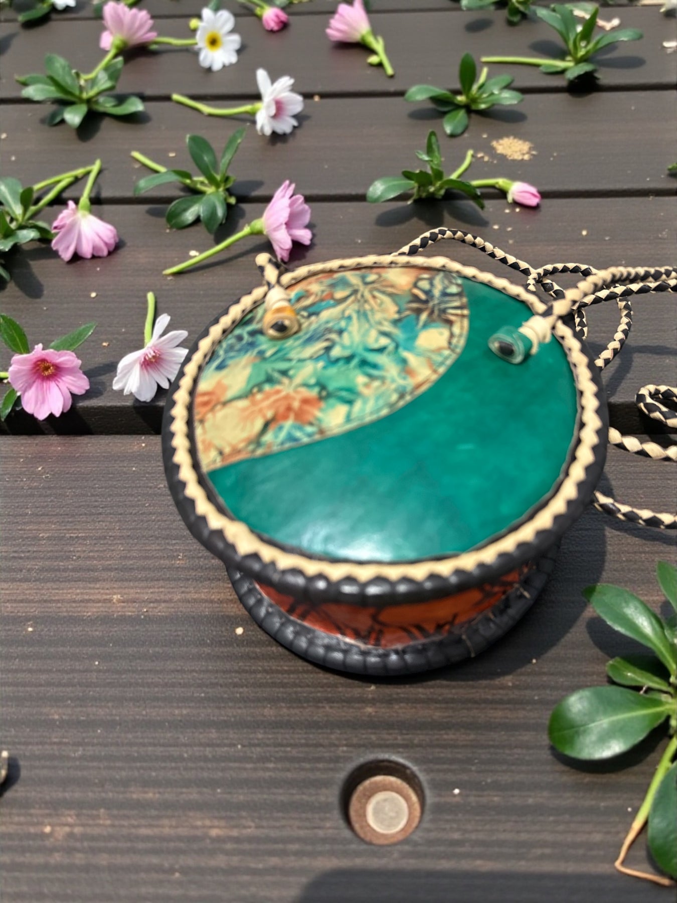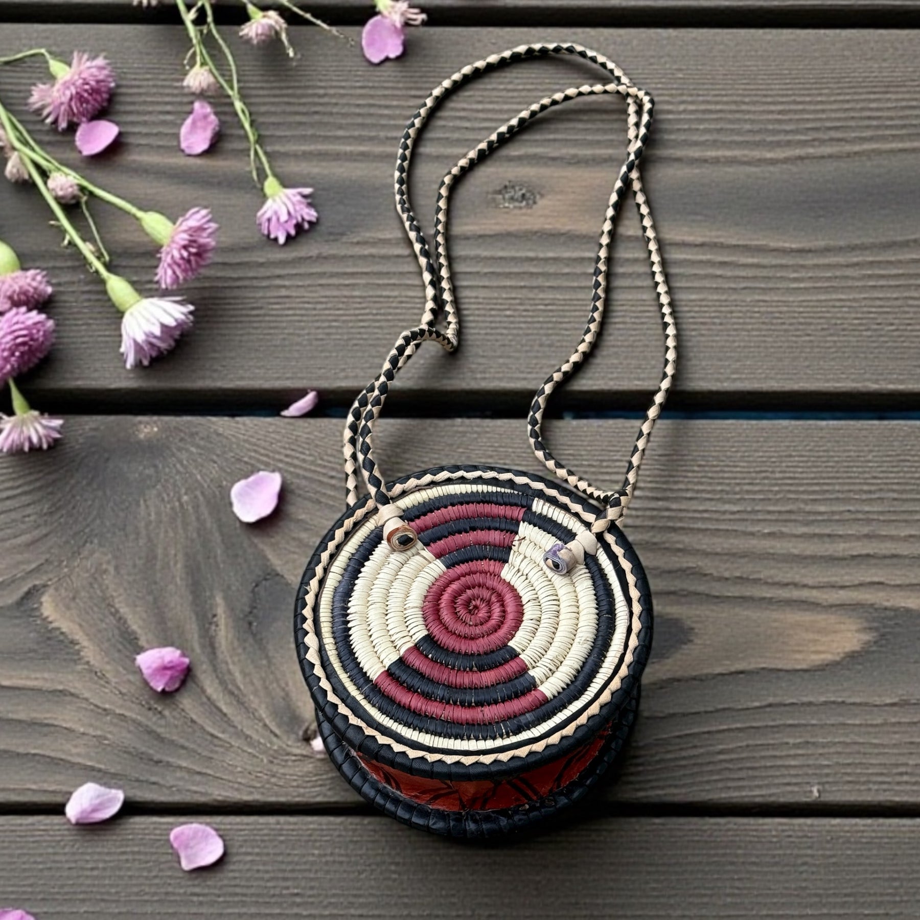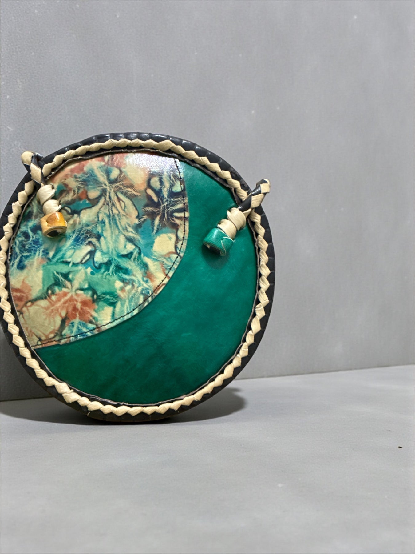 Handmade African Mini Tie-Dye Leather & Rafia Round Bag