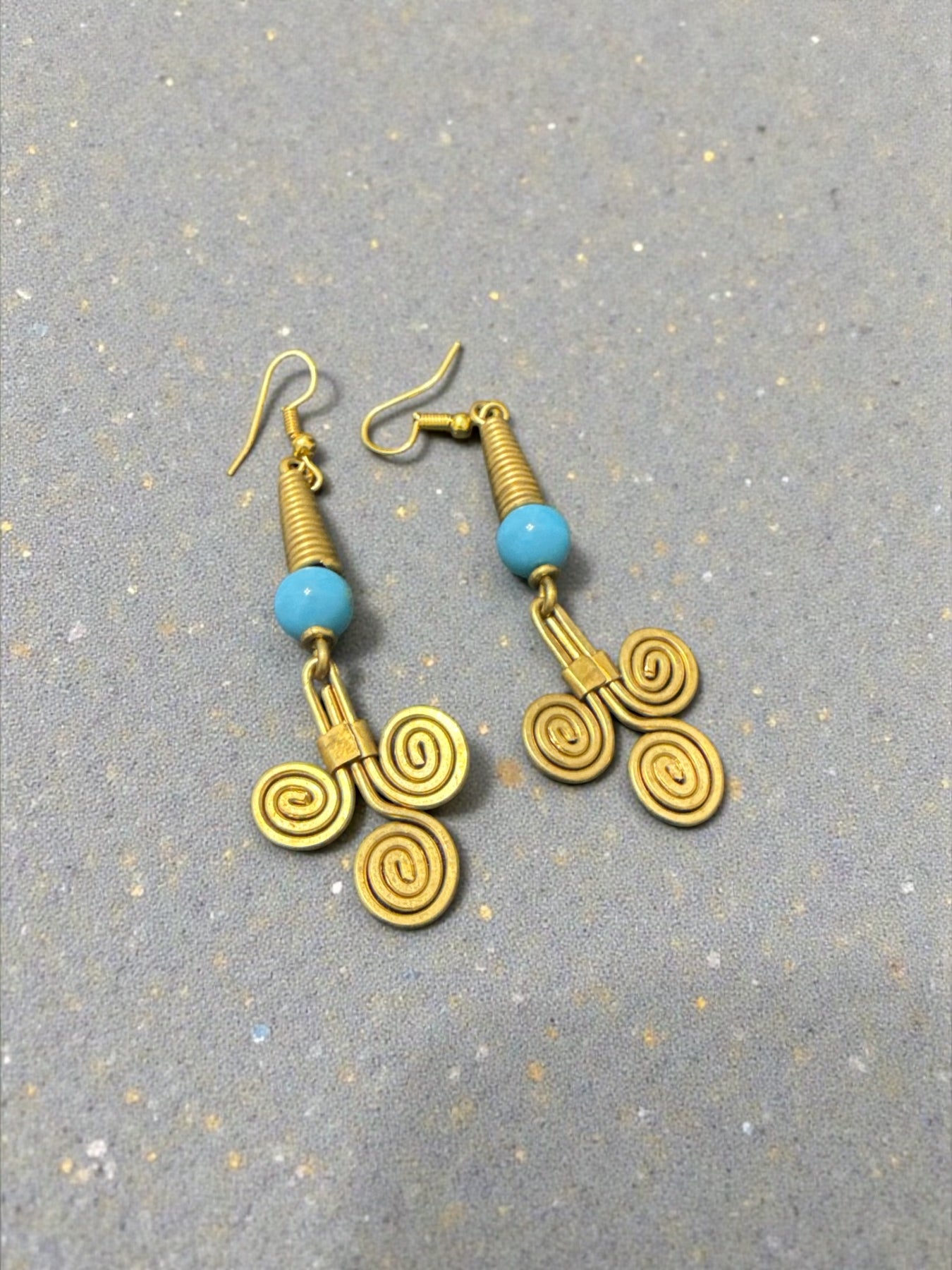 Tri-Spiral Essence Earrings — Handcrafted Brass and Glass Bead Design
