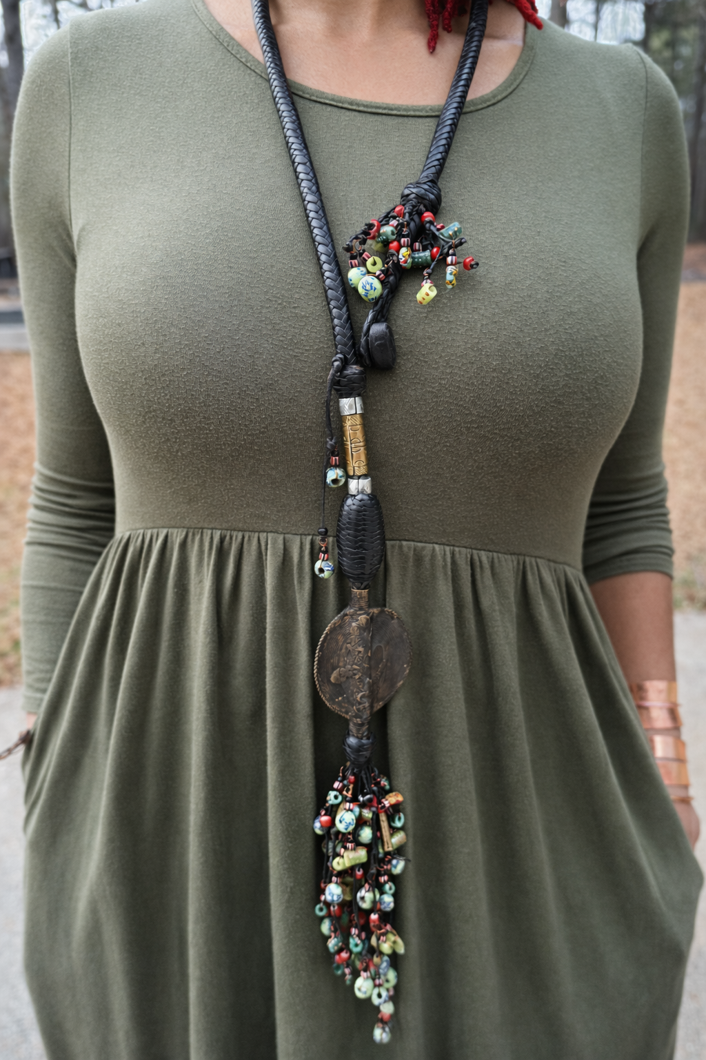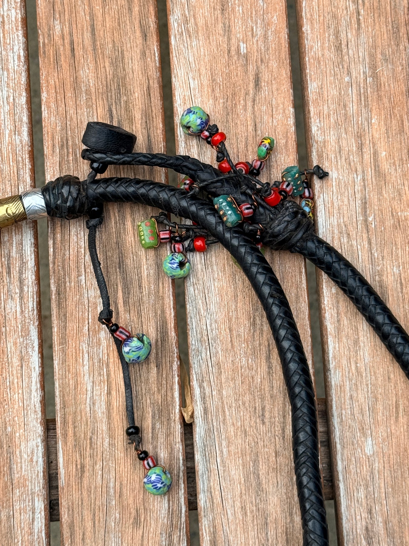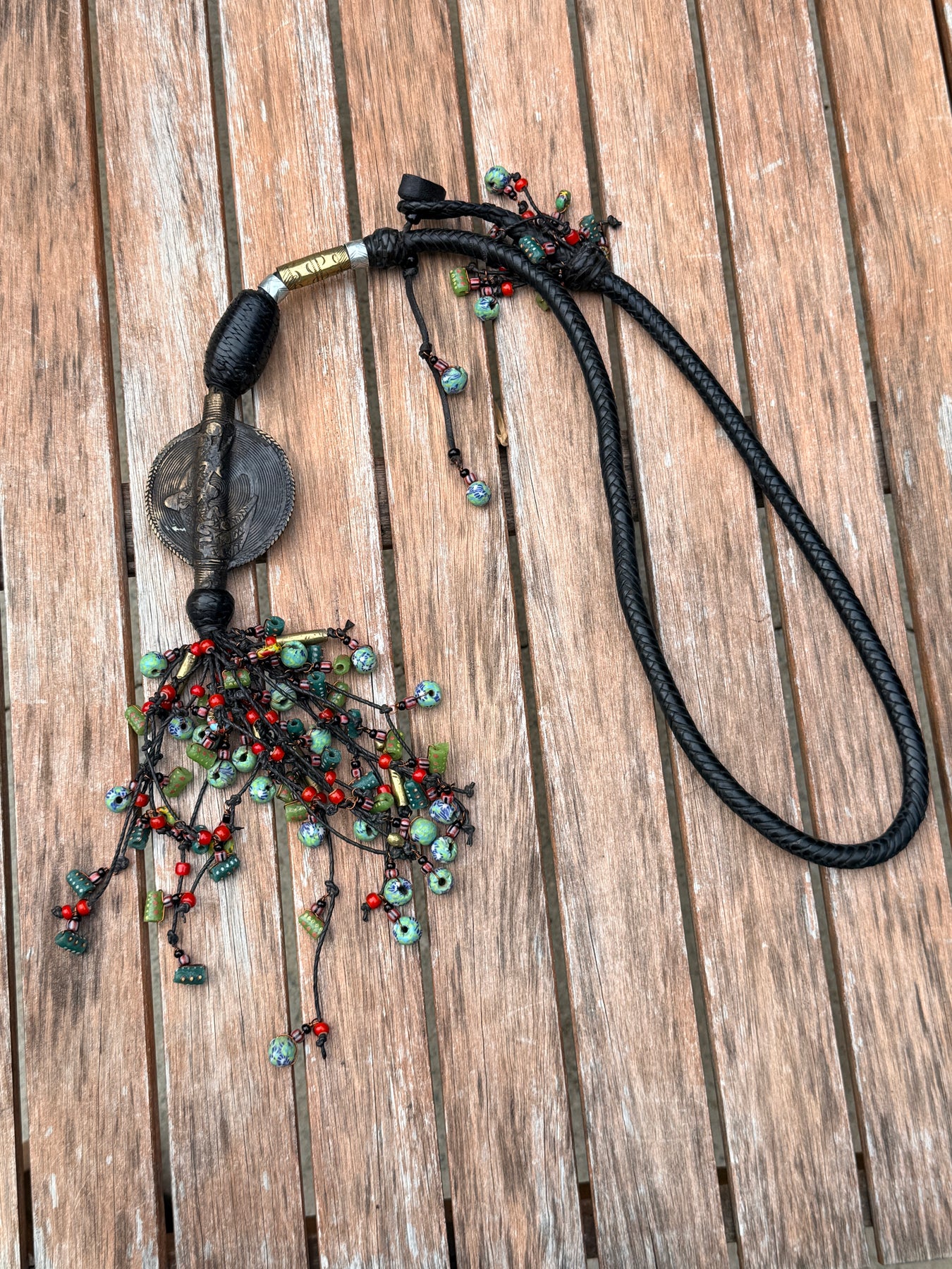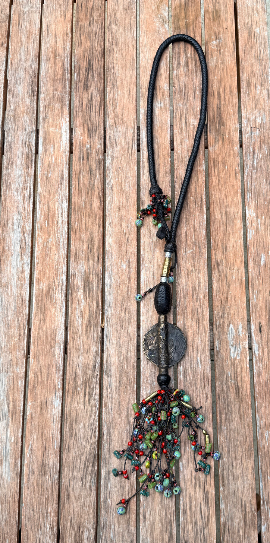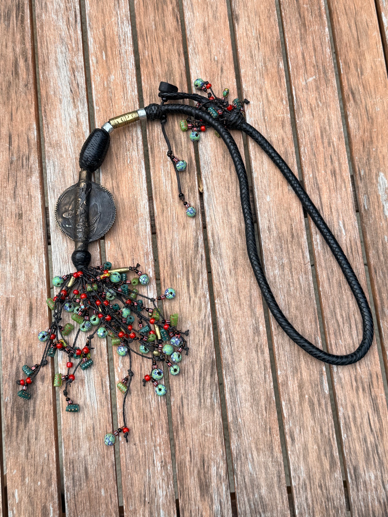 • Premium Materials: Genuine leather strap with a stunning metal pendant and colorful glass beads.